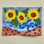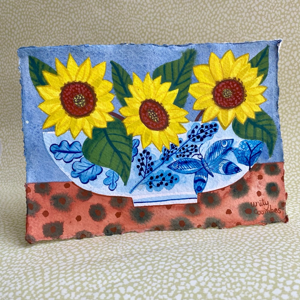 Sunflowers in a Blue and White Bowl